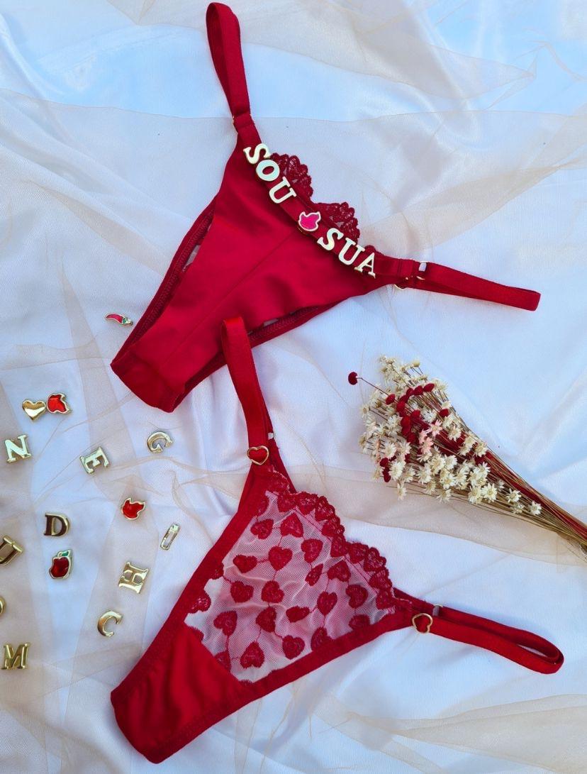 Calcinha personalizável – Tule Coração – Vermelha