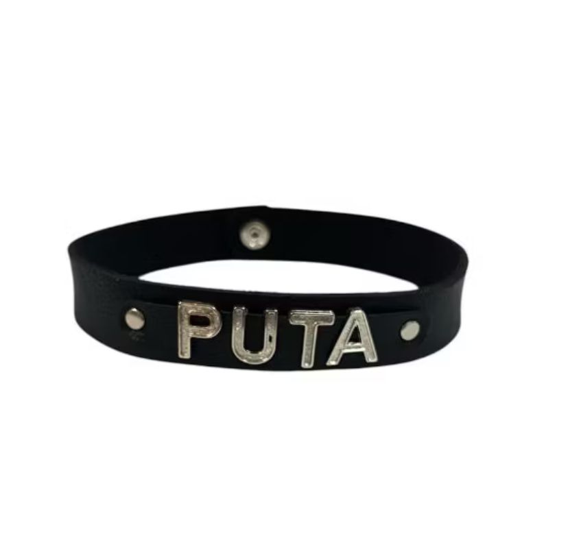 A chocker personalizada com a palavra “PUTA”, proporciona uma estética poderosa e provocante ao seu encontro. É um mix de sensualidade, atitude e sofisticação em um visual marcante.